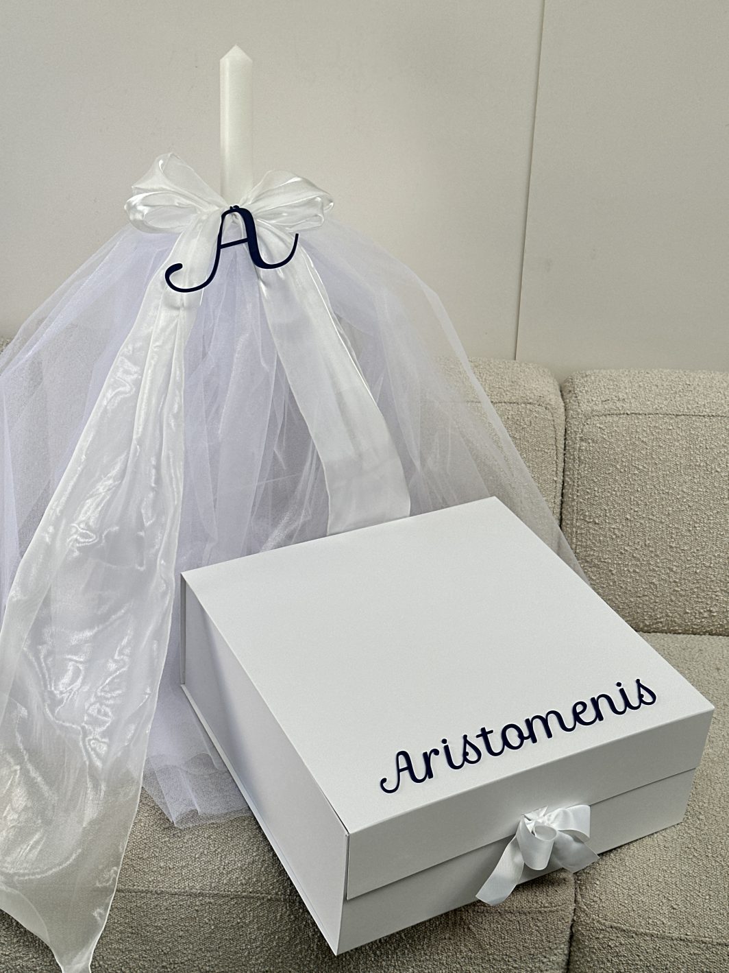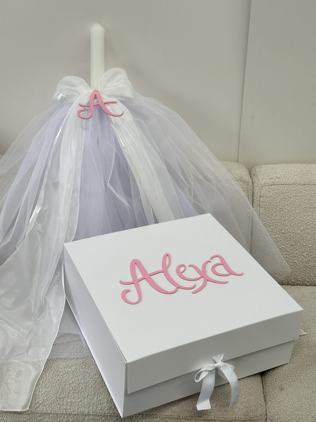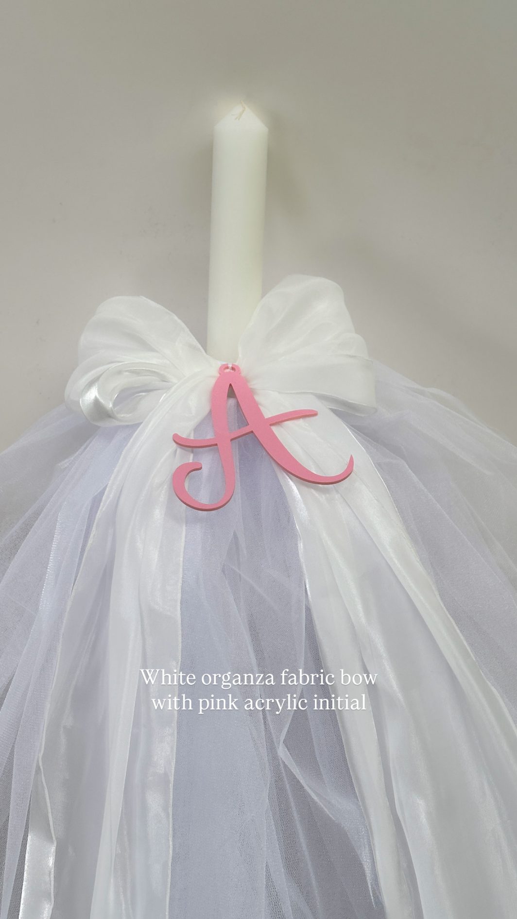 Fabric Bow with Tulle Skirt & Acrylic Initial Christening Lambatha Candle Box Set