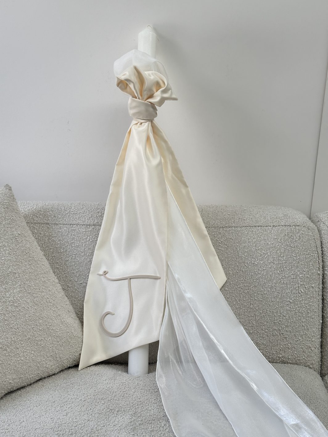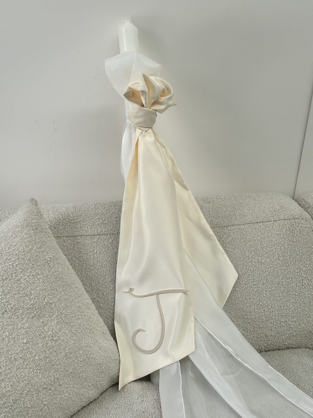 IVORY SATIN & ORGANZA PANEL ORTHODOX CHURCH CANDLE LAMBATHA