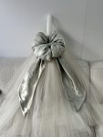 - Soft nude beige tulle skirt with sage organza bow