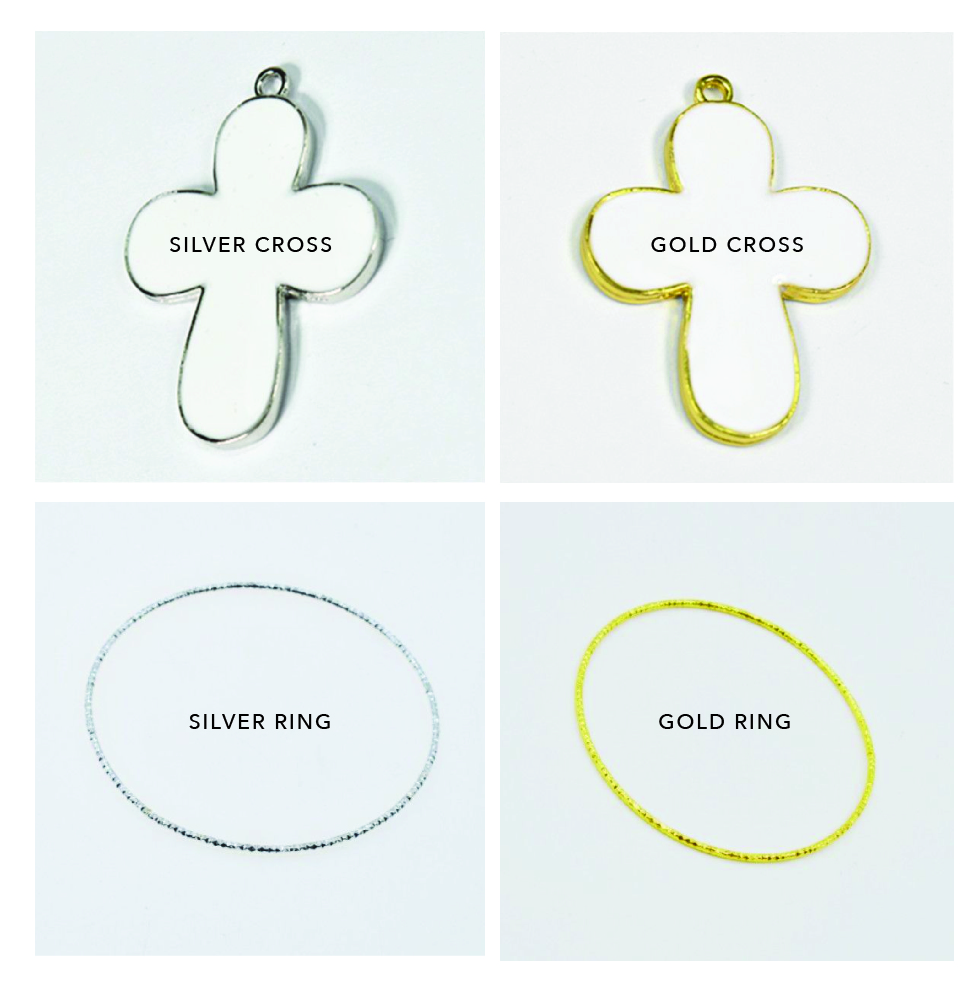 Options to choose from a silver or gold ring, with matching mirror tag or choose to have a paper tag. See the design template options.